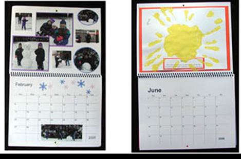 · Printed one month per page, single-sided · Each page is a full 8.5x11” sheet of bright white heavyweight cardstock · The front cover is blank on both sides . · Each page easily accommodates several 4x6 photos along with mats or accents. See samples of decorated calendars to see a few illustrations of what might work. · The area on the back of the previous month's page above it is blank and undecorated, ready for your creativity. · The calendar comes with a drilled hole so that it can be hung on a wall. · When opened flat, the decorated top and printed calendar bottom measure approximately 11x17".